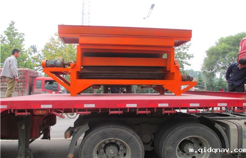 2、矿粒经输送皮带被送进上磁辊选别,因为褐铁矿,褐铁矿,氧化锰,炭酸锰矿的矿粒有磁性,马上被强磁场吸咐在磁辊上,脉石粒(杂石、碎石土)因为沒有磁性(磁性太弱),磁辊的强磁铁对它不发病吸附力,跟随磁辊的更改,矿粒一向被吸在磁辊上,而脉石粒在磁辊转到前端开发方向时被抛出去掉在隔矿板的前边(根据修改隔矿板视角的尺寸可调节精矿的层级),矿粒再次被磁辊送到脱磁区时全自动跌入一选集矿斗搜集为精矿制成品。